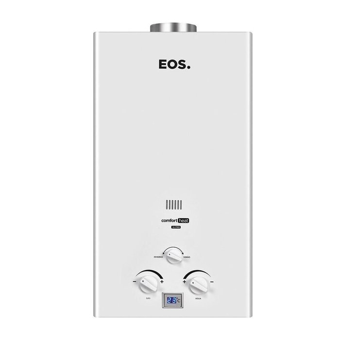 Aquecedor de Água a Gás EOS 16 Litros (Gás Natural) Exaustão Natural Branco EAQ160GM-NO Aquecedor de Água a Gás EOS 16 Litros (Gás Natural) combina tecnologia, eficiência e segurança para oferecer água quente de forma econômica e confiável. Seu design moderno e funcional se adapta a diversos ambientes, enquanto a função inverno e verão otimiza o consumo de gás e proporciona conforto térmico o ano todo.Projetado para operar mesmo em locais com baixa pressão de água, o aquecedor garante desempenho constante. Seu controle de vazão de gás e água permite ajustes personalizados para um uso sustentável. A segurança é reforçada por um sistema robusto com proteção contra falha de acendimento, superaquecimento e interrupção automática do gás em caso de baixa pressão. O temporizador de 20 minutos desliga o aparelho automaticamente para maior segurança.Com acendimento automático ao abrir o registro de água e um visor digital que exibe a temperatura em tempo real, o modelo garante praticidade no dia a dia. Sua capacidade de 16 litros por minuto é ideal para atender diferentes necessidades residenciais.Benefícios do Produto
