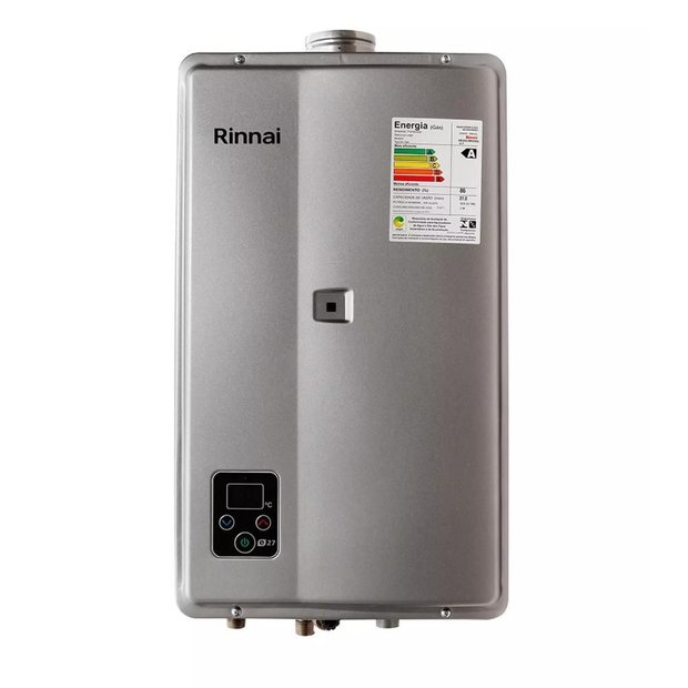 Descubra o Conforto e a Tecnologia Avançada da Rinnai! Transforme seus banhos em uma experiência única com nosso aquecedor de água de design moderno e tecnologia de ponta. Equipado com trocadores de calor coil-less e queimadores de triplo estágio, garante mais conforto e um controle de temperatura preciso. Perfeito para quem busca qualidade e inovação! Características Incríveis: Cores: Branco ou Prata Controle: Digital Ajuste de Temperatura: 35° a 60° Compatibilidade: Acessório Wi-Fi (Vendido Separadamente) Vazão: 27 litros/min Tipo de Gás: GN Garantia: 3 anos Exaustão: Forçada Alimentação: Elétrica Pressão de Funcionamento: 4 mca (mínima) a 60 mca (máxima) Conexões: Entrada de Gás 3/4", Entrada/Saída de Água 1/2" Voltagem: Bivolt (220/127 V) Dimensões: Altura: 60 cm Largura: 35 cm Profundidade: 17 cm Peso: 14 kg Potência Nominal: 37.700 kcal/h Consumo de Gás: 3,96 kg/h Rendimento: 86% Classificação PBE: A Vantagens Exclusivas: Chama Auto Modulante: Ajuste automático da chama para economia e eficiência. Sistemas de Segurança Integrados: Maior proteção para você e sua família. Identificação Digital de Erros: Diagnósticos precisos e rápidos. Acendimento Automático: Mais praticidade no dia a dia. Timer de Segurança: Uso seguro e controlado. Aplicações Perfeitas para Sua Casa: Ideal para até 3 duchas de 8 litros/min, 2 duchas de 10 litros/min, ou uma ducha de 15, 20 ou 25 litros/min. Versatilidade que se adapta às suas necessidades, seguindo as instruções do fabricante. Feito no Brasil com a Qualidade Rinnai! Aproveite toda a tecnologia e conforto que você merece com o nosso aquecedor de água. Perfeito para tornar seu banho mais agradável e eficiente. Compre agora e transforme sua rotina!