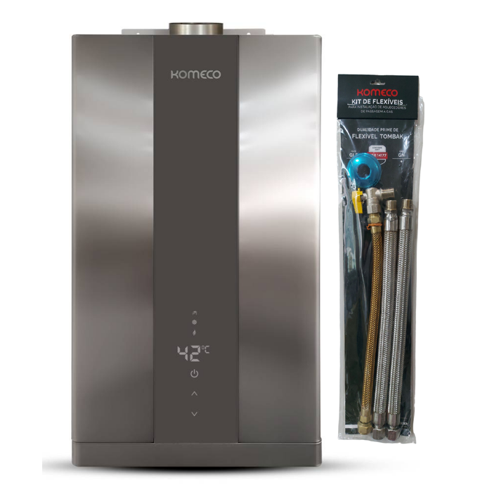 Aquecedor De Água A Gás Komeco KO 36 Di Home Digital 36 litros Inox GN Com Kit Ligação Komeco 40CM