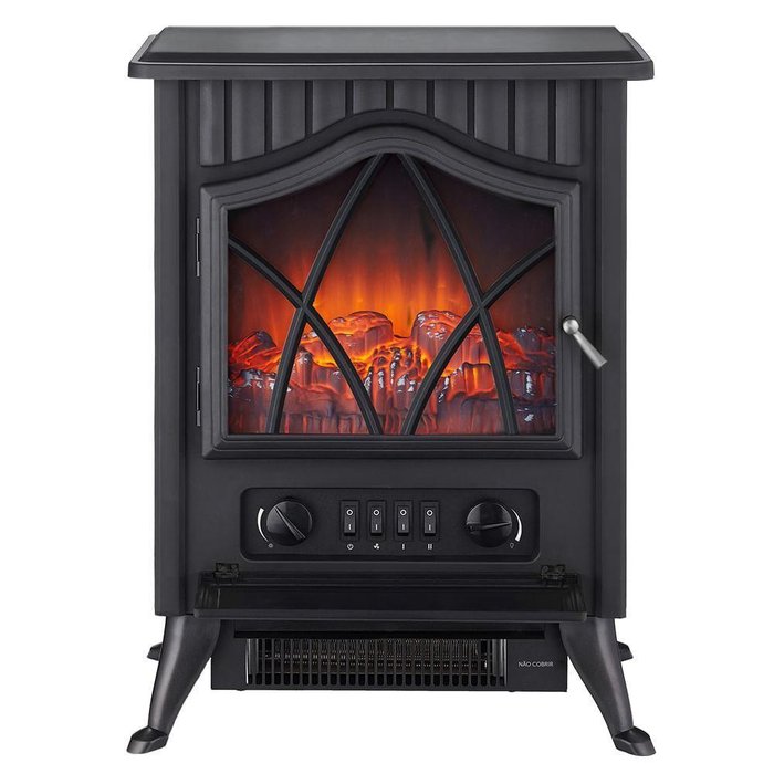 Tecnologia Moderna! Anti chamas, ajuste de intensidade de ar e regulagem de intensidade das chamas. 2 níveis de aquecimento + ventilação.