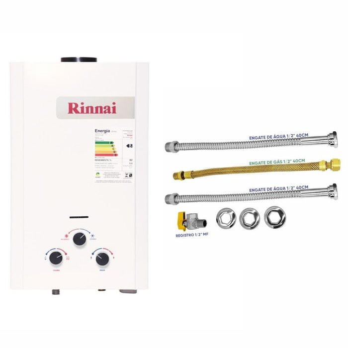 Aquecedor Rinnai 11 Litros M110 Cfh Glp (mecânico) + Kit Ligação de 40cm Branco