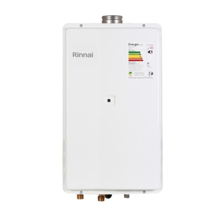 Conteúdo da embalagem: 1 aquecedor de água a gás Rinnai 2802 FEC GN + KIT de ligação de 40cm.