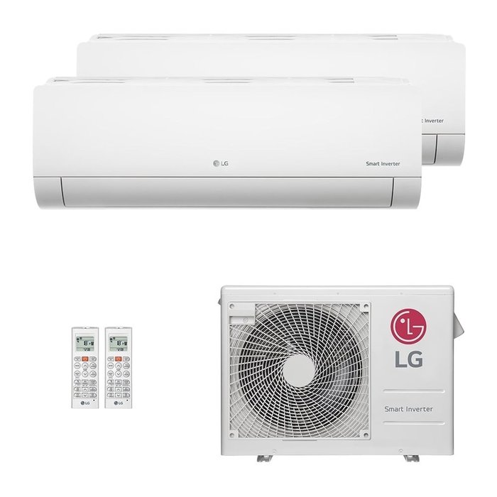 Ar-Condicionado Multi Split Inverter LG 2 Ambientes O sistema de ar-condicionado Multi Split LG é uma solução confortável e elegante de refrigeração/aquecimento para sua casa. Economia de energia: A avançada tecnologia de inversor da LG apresenta alto desempenho com menor consumo de energia. Ela trará grandes reduções nos custos ao longo da vida útil do produto. Refrigeração rápida com sensores inteligentes: Além de um sensor de temperatura, a LG adicionou um sensor de pressão para oferecer um controle mais preciso e estável. Com isso, é possível atingir a temperatura alvo 30% mais rápido para refrigeração e 44% para aquecimento. Solução ideal para diversos cômodos: O sistema de distribuição múltipla oferece refrigeração e aquecimento em todos os cômodos, com a instalação de apenas uma unidade externa. Opção com múltipla tubulação: Uma única unidade externa pode comportar de duas a cinco unidades internas. Economia de espaço: O sistema de distribuição múltipla da LG não requer várias unidades externas para refrigerar todos os cômodos em sua casa. É preciso apenas uma unidade externa para atender a toda a casa. Controle de carga inteligente: A unidade externa de distribuição múltipla controle automaticamente a temperatura do ar liberado na casa, com base nas condições externas._x000D_