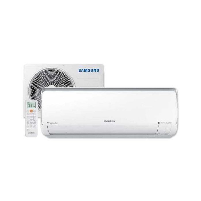 O ar split Samsung Digital Inverter produz ar limpo e fresco com economia. Ele possui o sistema Digital Inverter que economiza até 60% de energia, porque opera em capacidade mínima quando a temperatura é alcançada. O filtro Full HD que é reutilizável, basta lavá-lo com água. A função Virus Doctor reduz a presença de fungos e bactérias deixando sua casa protegida de doenças. O ar split Samsung tem unidade externa compacta, resistente e fácil de instalar.