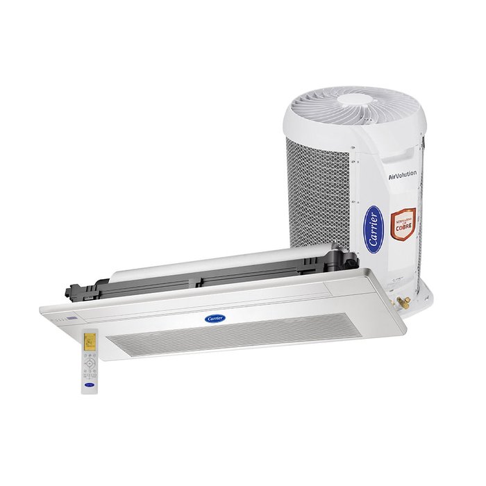 Especificações TécnicasKit Wi-Fi fornecido como acessório, que permite que a unidade seja comandada a distância através do aplicativo Carrier Air Conditioner e compatível com assistente de voz Google e Alexa Bomba de Dreno incorporada: evita acúmulo de água na unidade interna e gotejamento. Operação silenciosa: Ventilador interno com design de alta tecnologia que proporciona baixo nível de ruído. Painel frontal removível: Facilita a manutenção e acesso aos componentes internos sem a necessidade de retirar o produto do teto ou forro. 4 velocidades de ventilação: baixa, média, alta e automática 4 modos de Funcionamento: Resfria, desumidifica, ventila e aquece Função Oscilar/Swing: Distribuição uniforme de ar em todo o ambiente por meio de defletores laterais. Temporizador/Timer ON/OFF: Programa o horário para ligar e desligar Controle remoto com backlight (iluminação do display) Display digital na unidade interna: Facilita a leitura das informações e funções escolhidas Garantia de 2 ano, contra defeitos de fabricação (desde que instalado por um credenciado)