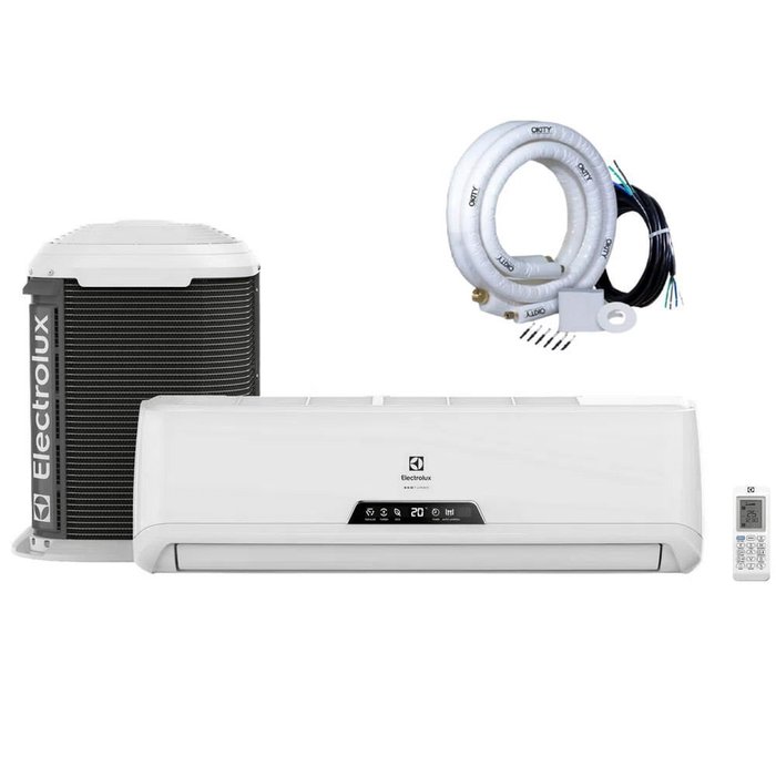 Ar Condicionado Split Hi Wall Electrolux Ecoturbo 18000 BTU/h Quente e Frio VI18R/VE18R com Kit Instalação Okity 5 Metros CB-0405FP – 220 Volts