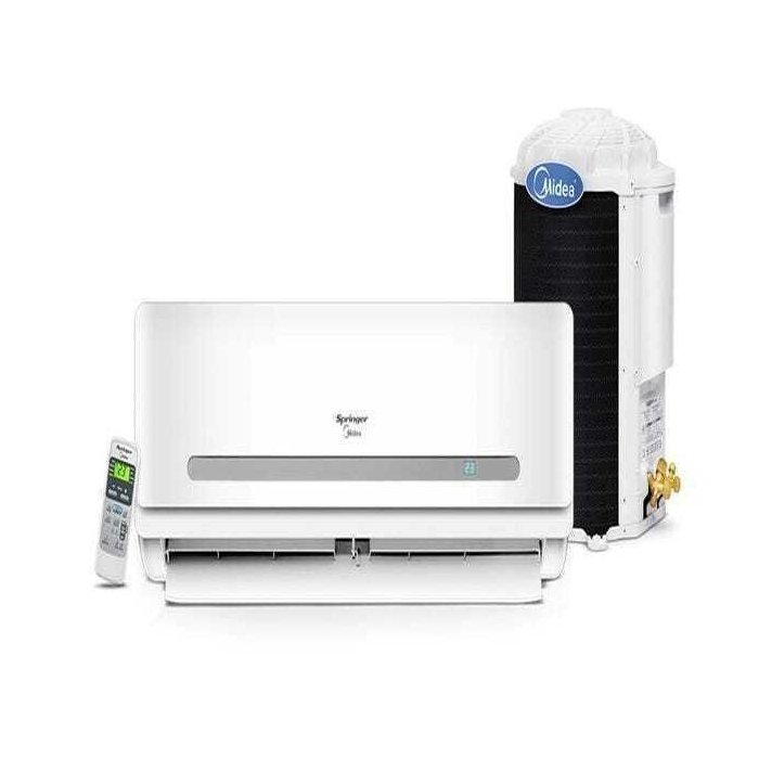 Springer Midea Split Hi Wall O novo Ar-Condicionado Split Springer Midea, com seus detalhes em prata, traz mais elegância para seu espaço. Acompanhado da exclusiva condensadora Cyclone 38K, a menor do mercado e com saída de ar vertical, que permite a aplicação em sacadas e reduz em até 90% a área de instalação.