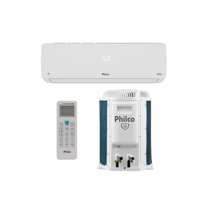 Quantidade de BTUs 9000Ciclo FrioClassificação Energética/Inmetro ATecnologia InverterTipo de Gás R-32Modelo PAC9000IFM15Medida Evaporadora (int.) (LxAxP/cm) 78 x 25 x 19,5cmMedida Condensadora (ext.) (LxAxP/cm) 48 x 55,5 x 38cmPeso Líquido Evaporadora (int.) (Kg) 7,5kgPeso Líquido Condensadora (ext.) (Kg) 15,5kgFabricante PhilcoTubulação (Bitolas) 1/4 e 3/8Consumo Aproximado de Energia (kWh) 292 kWh/anoSleep SimTurbo SimFiltro Anti-Bactéria SimDesumidificação SimBotão de Emergência SimCompatível com Kit Wi-Fi SimCompressor RotativoFaixa de Temperatura de Trabalho 16°C a 32°CFiltro Lavável e fácil de trocarGarantia 12 mesesModo Automático SimModo Refrigeração SimModo Ventilação SimNível de Potência Sonora Condensadora 60 dB (ANível de Potência Sonora Evaporadora 48 dB (A)Oscilar SimPotência 900WReinicio Automático SimTimer SimVoltagem 220V