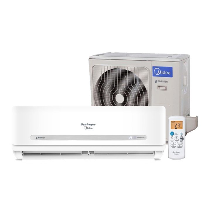 Ar Condicionado Split Springer Midea Inverter Quente e Frio 33000 BTUs 220V 38MBQA33M5O Ar Condicionado Springer Midea Inverter é sinônimo de tecnologia juntamente com maior conforto térmico e mais economia. São diversas funções que podem ajustar a temperatura para maior conforto térmico e economia de energia.Para proporcionar máximo conforto, o Ar Condicionado conta com diversas funções Como a Função Super para aqueles momentos que você precisa que o ambiente gele mais rápido, desta forma o ar condicionado opera em sua capacidade máxima. Conta também com Função Oscilar, movimentando as aletas horizontais, desta forma, proporcionando uma sensação agradável de frescor no ambiente.Pensando na sua saúde, o Springer Midea Inverter conta dois tipos de filtro. Desta forma, protege você e sua família, o filtro 3M HAF deixa o ar livre de micro-organismos, capturando partículas de pó e ajudando a reduzir a proliferação de bactérias no ambiente. Já o filtro de carvão ativado elimina odores e fungos, prevenindo reações alérgicas;Com a Função Dormir, o ar condicionado ajusta automaticamente a temperatura mais adequada para manter o máximo de conforto durante o sono, além de tudo ainda gerando economia. Essa função combinada com a função Não Perturbe, desliga a luz do display, que reduz a luminosidade do ambiente e proporciona uma noite de sono mais tranquila.Esse modelo conta com 4 modos de operação, sendo capaz de resfriar, ventilar, desumidificar e aquecer. Também possui 4 velocidades de ventilação (baixa, média, alta e automática). Sem contar que ainda possui display em LED, e controle remoto em português que facilita o uso de todas as funções. O Springer Midea Inverter ainda conta com autodiagnóstico que é capaz de detectar eletronicamente erros de funcionamento do aparelho e reinício automático que memoriza a última configuração em caso de reinicialização automática.Além de tudo ainda conta com diversas outras funções, como Timer, que liga e desliga o aparelho automaticamente no tempo programado de acordo com as suas necessidades, trazendo maior economia de energia ao alcance de um botão. Já a função Direção permite que você modifique o ângulo de direcionamento das aletas horizontais. Para todas as situações, o Springer Midea Inverter garante a função mais adequada para seus dias serem melhores e mais confortáveis.Especificações Técnicas:- Marca: Midea