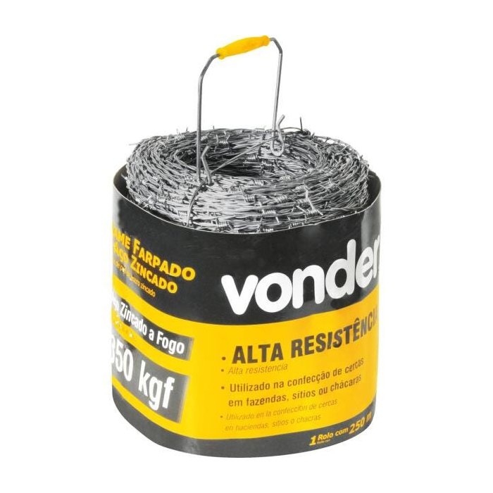 Massa aproximada por rolo de arame farpado: 11,50 kg