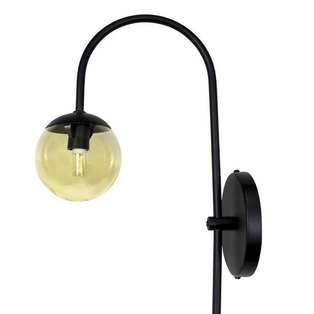 Arandela Arqueada Preta Globo Vidro Âmbar + Lâmpada Led G9 5w 6000k Bivolt Preta