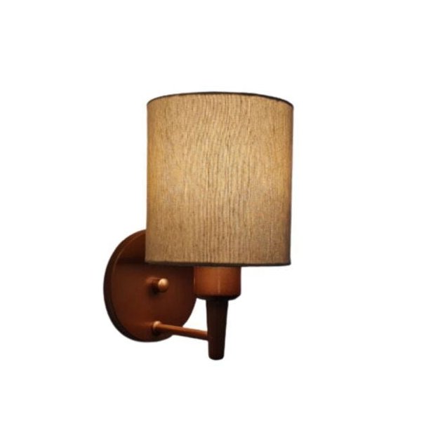 Arandela Cilíndrica Md-2009 Base Cobre Cúpula em Tecido 14x15cm Palha - Bivolt