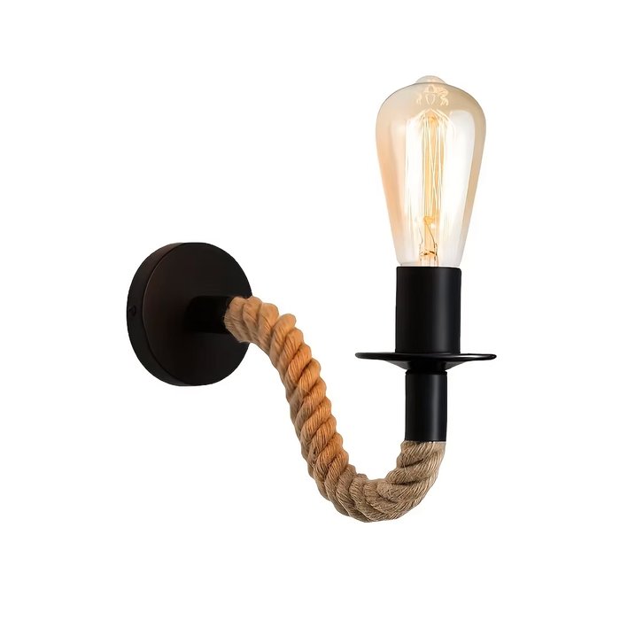 Arandela de parede rústica, feita com fibra natural de cânhamo e metal. Possui um design elegante e rústico, que combina perfeitamente com ambientes decorados com estilo rústico, industrial ou vintage.
