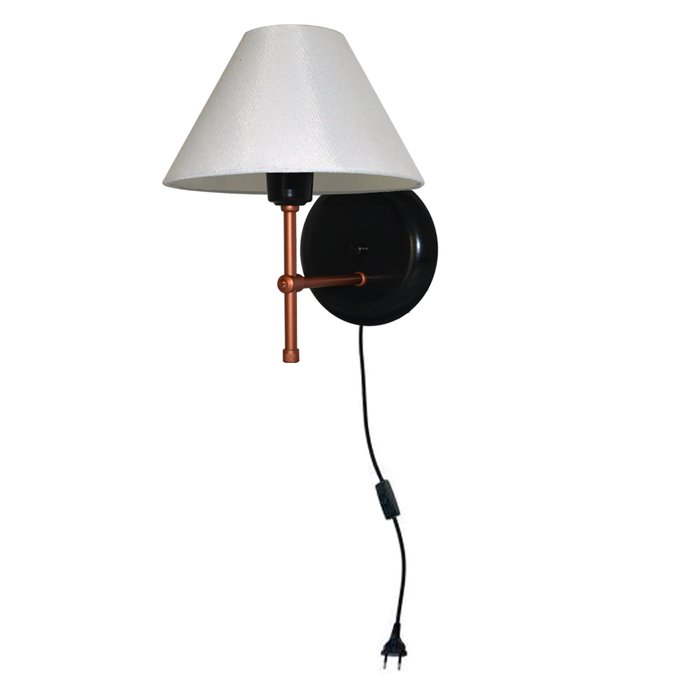 Arandela de Parede modelo em T Base na cor Preto com Cobre e Cúpula na cor Branco. Feita de Alumínio e Cúpula de Algodão.