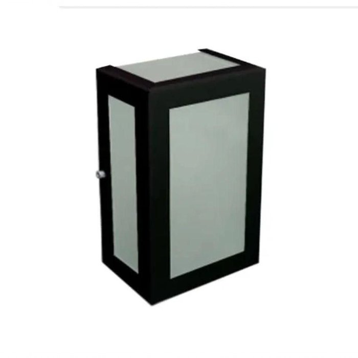 ESPECIFICAÇÕES TECNICAS: Estrutura em Aluminio Injetado Preto texturizado + Vidro Fosco. Medidas: 20cm(A) x 13cm(D) x 9cm(L). 1 Soquete para Lâmpada E27. (Lâmpada não inclusa).