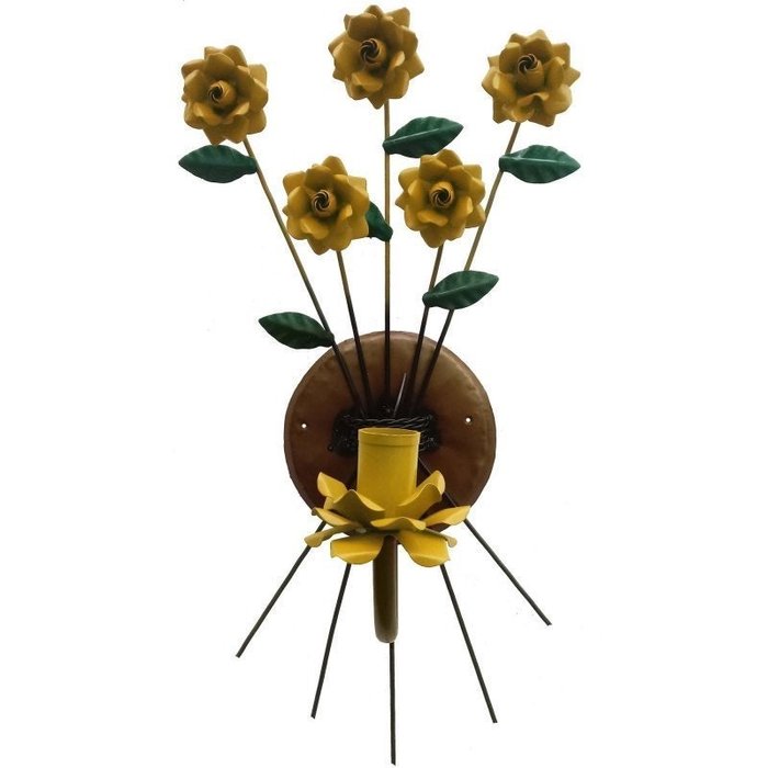 Arandela em Ferro com Flores Rustica para Parede de Sala de TV e Jantar - Amarelo