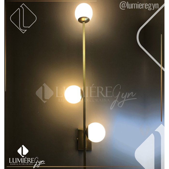ARANDELA JABUTICABA DOURADO FOSCO GLOBO LEITOSO - IDEAL ID 28 Arandela em aluminio Pintura Eletrostatica Dourado 1globo branco fosco 100mm, Tipo de Lampada : Soquete G9 (não inclusa) Medidas: Alt. 23cm Prof. 23cm