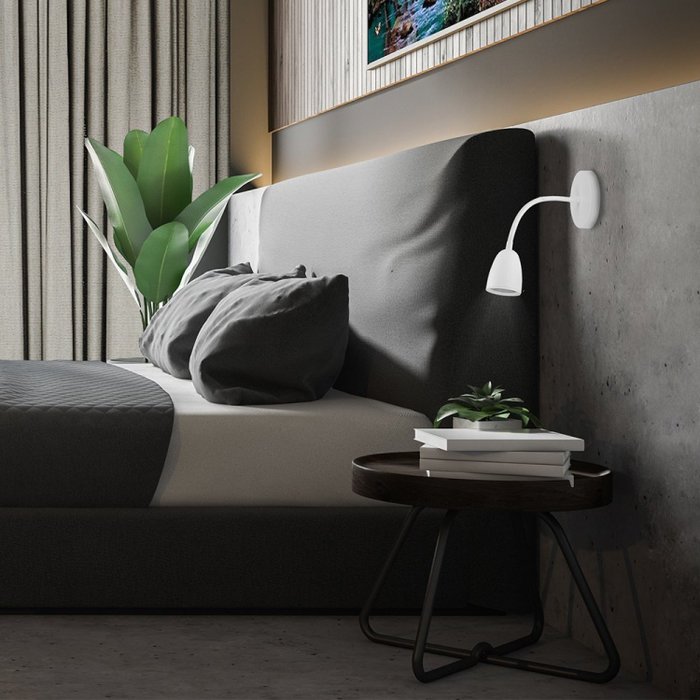 A peça é extremamente versátil, pois permite o direcionamento da luminosidade através de seu corpo ajustável, sendo ideal para utilização em cabeceira de cama.