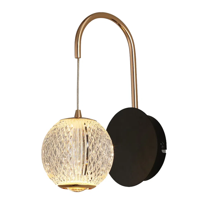 Arandela Luce Dourado / Preto e Transparente (c)18cm (l)12cm (a)27cm 1x4,2w 3000k 252lm Led Dourado / Preto e Transparente