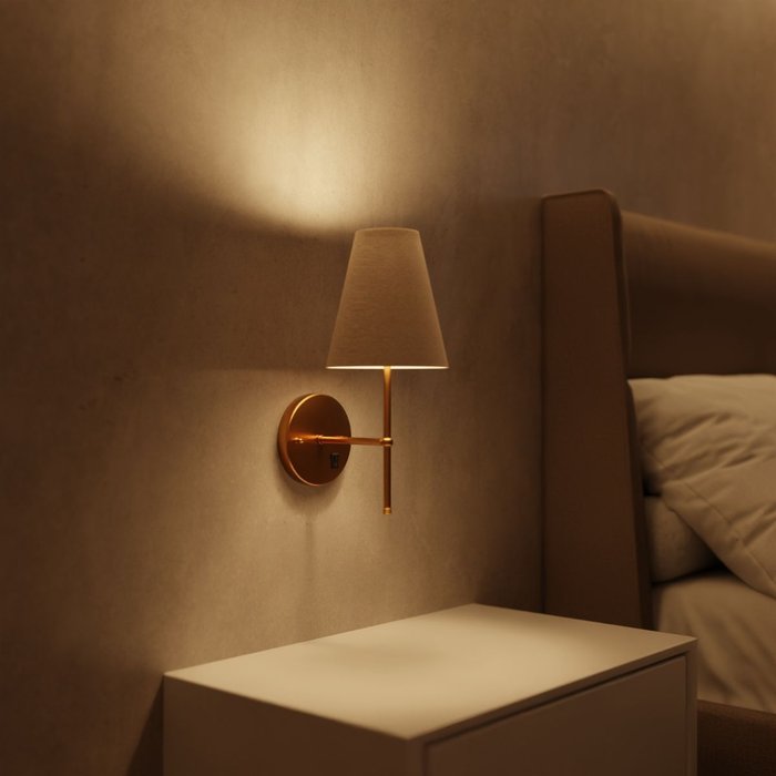 Arandela Luminária de Parede Clássico com Interruptor com Cúpula Ref 05 Decoração Casa Sala Quarto Dourado com cúpula bege