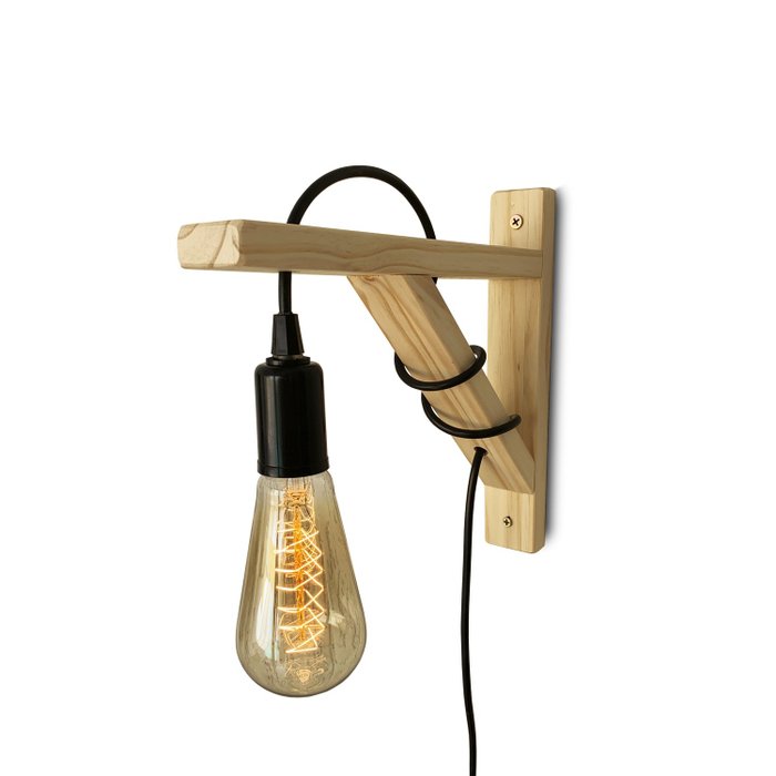 Arandela Mão Francesa De Parede Em Madeira Pinus Com Fio 2 Metros