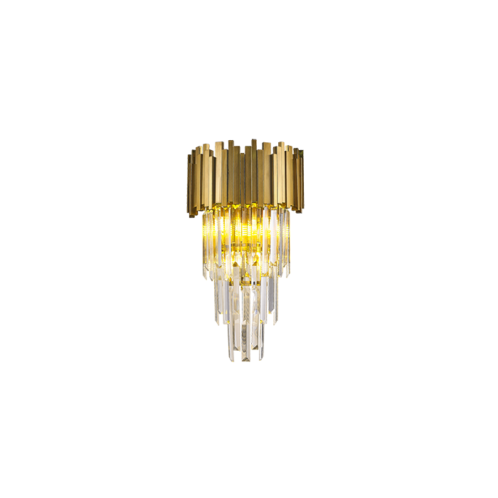 Arandela Moderna Metal Dourado e Cristal 2e14 35cm Paris Luz