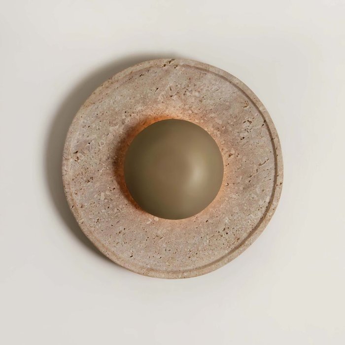 Arandela de Parede LED Petra Redondo Ø26cm Pedra Travertino e Alumínio – Bella Italia AR19100