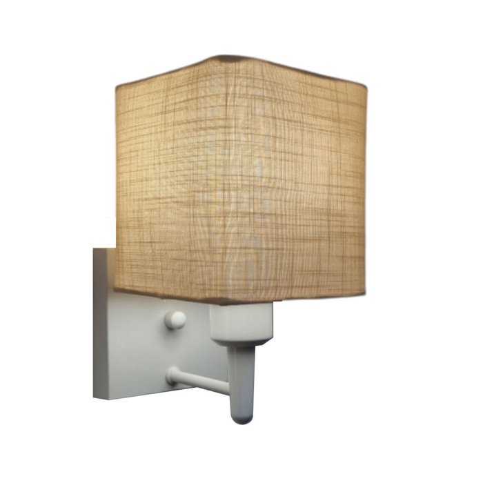 Arandela Quadrada Md-2006 Base Branca Cupula em Tecido 15/13x13cm Palha