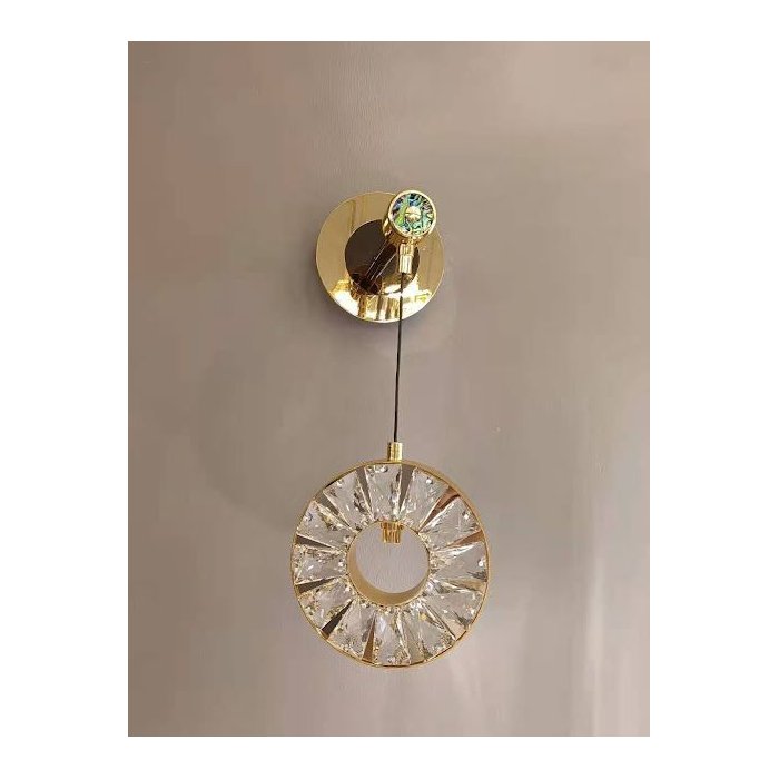 Arandela Redonda Cristal Dourado 15cm Led 8W Bivolt