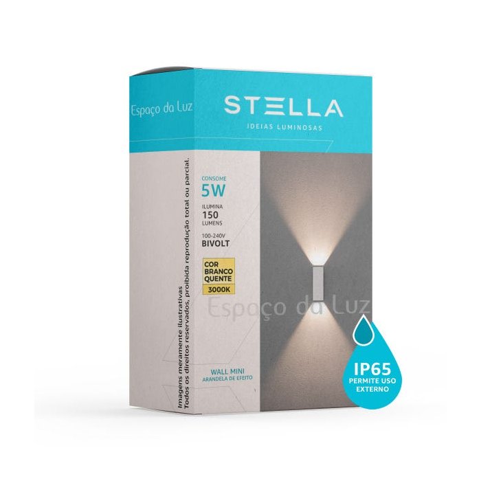 Arandela Wall Mini LED 5W 3000k 150lm IP65 BIVOLT - Stella STH9730 - Preto