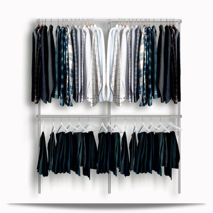 Este modelo é recomendado para montagem de lojas, lavanderias ou residências. O trilho graduado contribui para o fácil deslocamento de altura dos cabideiros ou mesmo a remoção de um deles em caso de vestidos ou casacos longos.