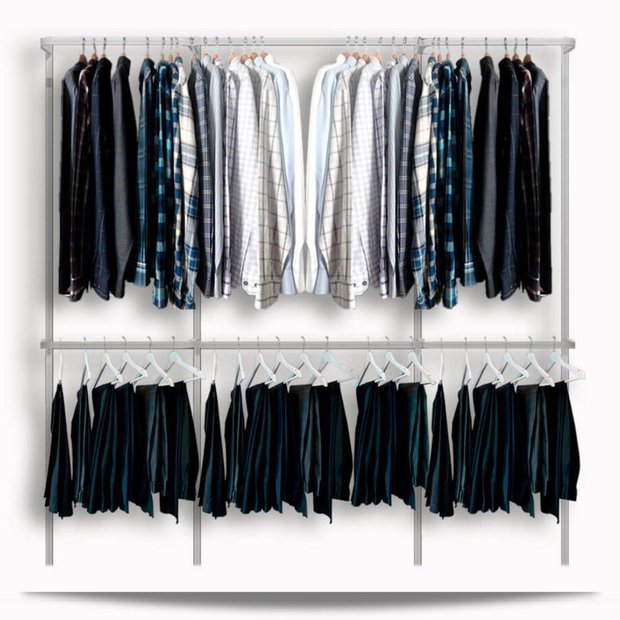 Dimensão: 2,20 x 0,50 m (LARGURA x PROFUNDIDADE)Altura recomendada: 2,35 a 2,75mDescritivo das peças que compõe o produto:Qtde Item4 CABIDEIRO 60CM BRANCO2 CABIDEIRO 90CM BRANCO2 CREMALHEIRA 200CM - DUPLA (c/ bucha e parafuso)2 CREMALHEIRA 200CM - SIMPLES (c/ bucha e parafuso)Quantidade de peças organizadas (*):126 *roupas penduradas;Vantagens dos aramados modulares: 1. Garantia de 1 ano2. Hipoalérgicos - inibem a formação de fungos como o bolor3. Modulável - as peças podem ser intercambiadas em módulos de mesma dimensão4. Escalonável - possibilidade de corrigir altura entre as peças a qualquer momento sem a ajuda de ferramentas ou mão de obra especializada5. Material - aço carbono 1020 com pintura eletrostática a pó6. Carga - 20 kg por peçaTempo de montagem - aproximadamente 1hMaterial: Aço carbono com pintura eletrostática a póCor aramado: Branco Acompanha o pedido:- Instruções de montagem- Buchas, engates e parafusos.- Nota fiscal