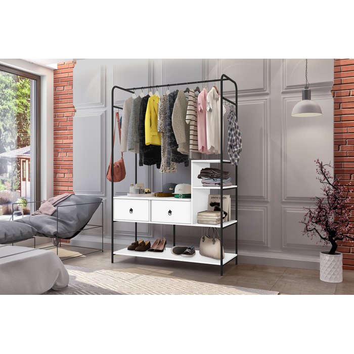Arara Cabideiro Closet Aberto Sevilha Industrial 2 Gavetas:Preto/Branco Preto/Branco