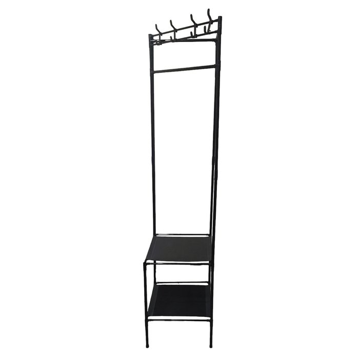 Arara Cabideiro de Canto Prateleira 2 Andares Sapateira Gancho Rack Roupa Camisa Chupeu Multiuso Qua Preto