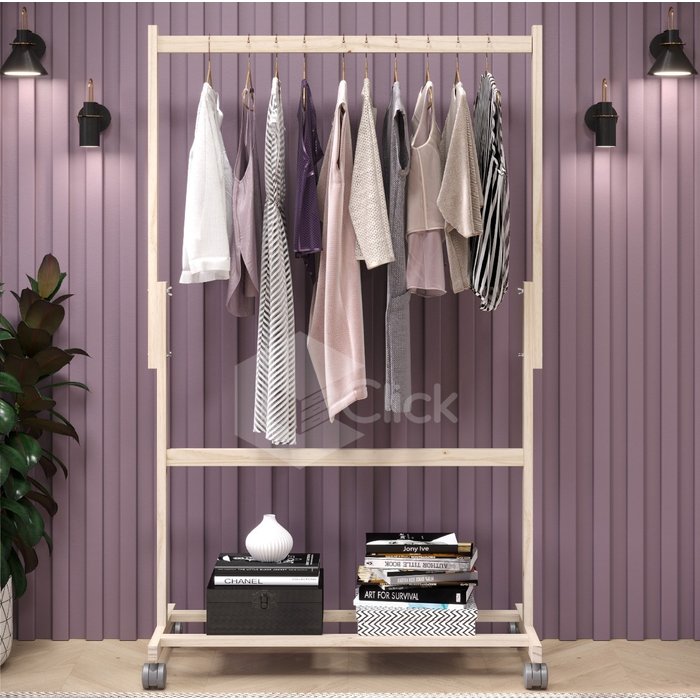 Com 161 cm de altura, possui Rodízios e prateleira. É ideal para colocar roupas, enfeites, sapatos, caixas organizadoras e etc..