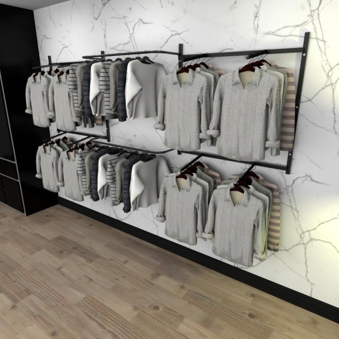 Arara de Roupas Closet Quarto com 18 Peças Cremalheira 300x100 Cm Cor Preto Modelo Clst1b393