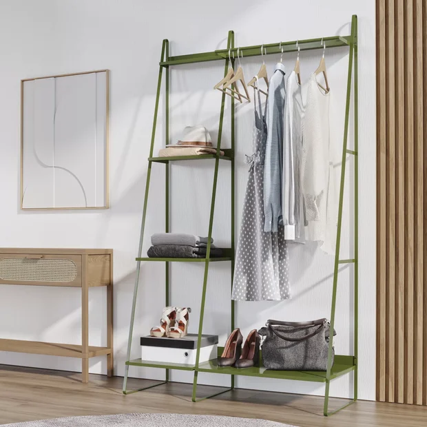 Arara de Roupas em Aço Begônia CabeCasa MadeiraOriginals Verde Musgo