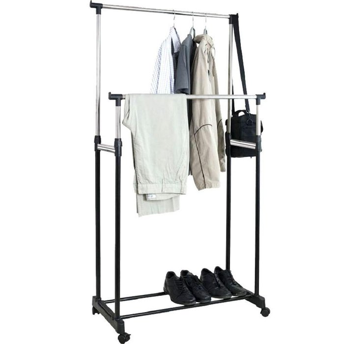 Arara Dupla De Roupas Regulável Em Aço Inox Com Sapateira