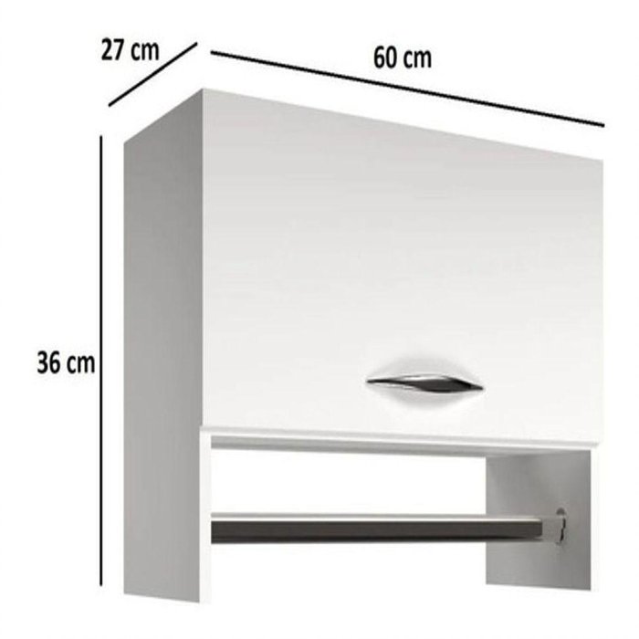 ARMÁRIO AÉREO CABIDEIRO 1 PORTA DE PAREDE ;Armário Aéreo modulado para compor os móveis de sua Cozinha, Lavanderia, Escritório, Área de Serviço, Salão de Beleza.. ;Para você que procura um móvel que ocupa pouco espaço e que ofereça beleza, ideal para te ajudar na organização da sua cozinha, dispensa, lavanderia, com 01 porta e com 01 parte interna, e 1 tubo cabideiro, espaços suficientes para armazenarem seus utensílios domésticos, materiais de limpeza, etc, além de Rodinhas para facilitar sua locomoção na hora da limpeza do dia a dia. ;Medidas:Altura: 36cmLargura: 60cmProfundidade: 27cm ;-Produto compacto e com os espaços bem distribuídos-1 Tubo Cabideiro Cromado-1 Porta com dobradiças metálicas, não tem pistão, e com 1 Parte Interna-Puxador em pintura cromada-Pintura UV brilhante-Ótima bancada para Sapatos, Cabideiro, Armário Suspenso, Closet-Pode ser usado na Cozinha, Lavanderia, Escritório, diversas partes da casaCor : Branco