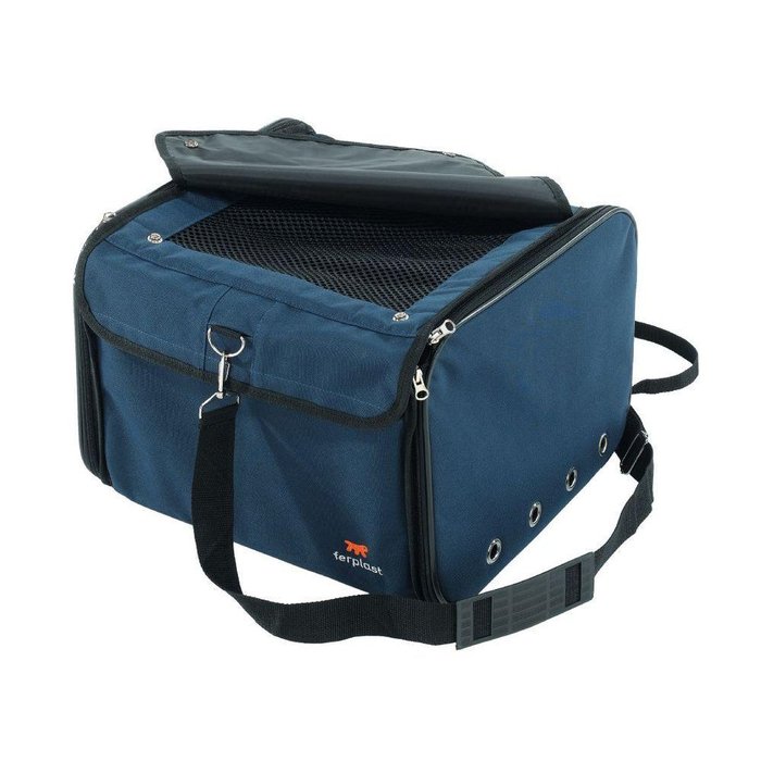 ARCA Transportador flexível para cães e gatos TAMANHO: 38 x 38 x h 29 cm CARACTERÍSTICA Transportador para cães de pequeno porte, também adequado para gatos Feito de nylon resistente Cinto de segurança e almofada inclusos Alça de ombro ajustável e forte Parte superior feita de rede de nylon para ventilação adequada Orifícios laterais redondos Parte superior que pode ser coberta novamente para dar o seu amigo a máxima privacidade Alcance máximo: 8 Kg DESCRIÇÃO Arca é um transportador feito de nylon resistente, equipado com furos muito úteis para garantir uma ventilação adequada no interior. Este transportador de tecido para cães pode ser aberto em um instante graças aos práticos fechos de correr. Ideal para ser posicionado sobre o assento do carro graças ao cinto de segurança incluso, é apropriado para transportar seu animal de estimação para um exame veterinário ou para uma viagem curta. Este transportador de nylon é suficientemente grande para acolher gatos ou cães de pequeno porte. A parte superior pode ser fechada para dar ao seu animal máxima tranquilidade, especialmente durante viagens curtas quando o seu cão ou o seu gato precisa dormir por um tempo. Arca está também equipada com uma alça de ombro ajustável; quando necessário, a alça pode ser removida. Proposta em uma única cor azul com detalhes em preto, bordas e costuras.
