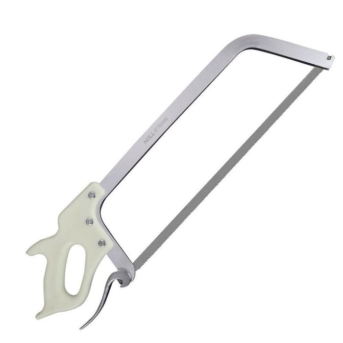O QUE É O ARCO DE SERRA PARA AÇOGUEIROO arco de serra para açougueiro é uma ferramenta manual projetada especificamente para cortar carne em ambientes de açougues, matadouros ou cozinhas comerciais. Ele consiste em um arco de metal resistente com uma lâmina serrilhada tensionada entre as extremidades. O arco de serra permite que o usuário corte carne com precisão e eficiência, facilitando o trabalho de cortar peças maiores em porções menores. Geralmente, é usado em conjunto com uma tábua de corte para fornecer suporte durante o corte. COMO UTILIZAR O ARCO DE SERRA PARA AÇOGUEIROO arco de serra para açougueiro é uma ferramenta utilizada para cortar carnes em ambientes de açougues ou cozinhas. Para utilizá-lo corretamente, é necessário posicionar a carne sobre uma superfície estável e limpa, segurando-a firmemente enquanto se utiliza o arco de serra para fazer os cortes desejados. É importante manter a lâmina do arco de serra afiada e limpa para garantir cortes precisos e higiênicos. Após o uso, é essencial limpar adequadamente tanto a ferramenta quanto a área de trabalho para evitar contaminação cruzada. DESCRIÇÃO DO ARCO DE SERRA PARA AÇOGUEIRO- Arco de serra em alumínio; - Lâmina em aço inox; - Aplicação: corte e/ou serramento de carnes, ossos e outros; - Ideal para açougue e frigorífico; - Acompanha uma lâmina. ESPECIFICAÇÕES DO ARCO DE SERRA PARA AÇOGUEIRO- Comprimento: 20'-500mm - Dentes por polegada: 9 - Und. de venda: 1 - Marca: NOLL; - Código:85.0003 Distribuidor Autorizado para todo o Brasil. O Grupo Piveta Ferramentas é uma empresa com mais de 30 anos no mercado e líder no segmento de Máquinas e Ferramentas para Usinagem, contamos com mais de 25 Mil produtos para melhor lhe atender. Temos como compromisso um atendimento personalizado, entrega rápida e excelência na prestação de serviços. Não perca tempo procurando, a ferramenta certa para você está aqui. É importante ressaltar também que nossa atuação não se limita ao setor de Usinagem Mecânica, nossa variedade de produtos nos permite atender a vários setores como Agronegócio, Embalagem Plástica, Retifica de Motores, Usinas de Açúcar e Álcool, Manutenção Industrial (Usinagem e Caldeiraria), Mineração, Área de Fertilizantes, Frigoríficos, Usinagem Médio para Grande Porte e Automação Industrial. Desta forma fortificando e ajudando no desenvolvimento econômico do nosso país.