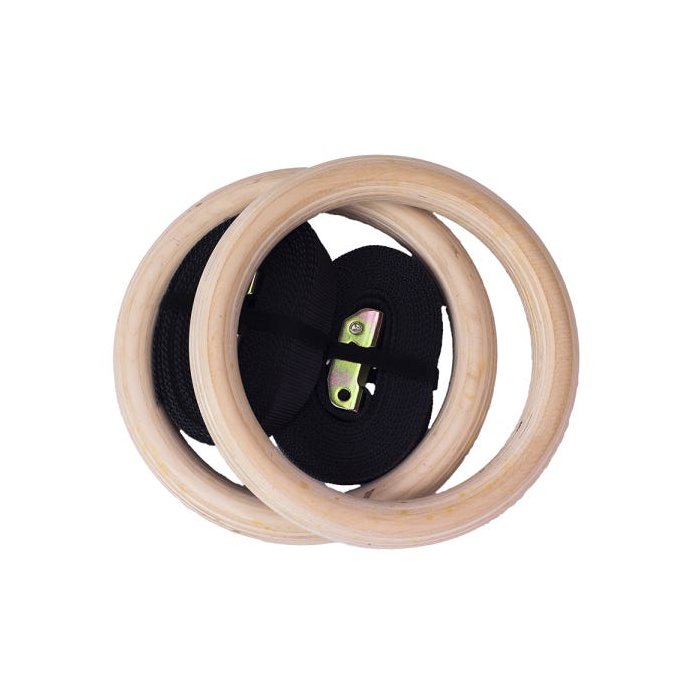 As Argolas são fabricadas em madeira maciça e incluem fitas de nylon reforçado e fivelas em metal de fecho rapido para garantir maior conforto e segurança nos treinos.