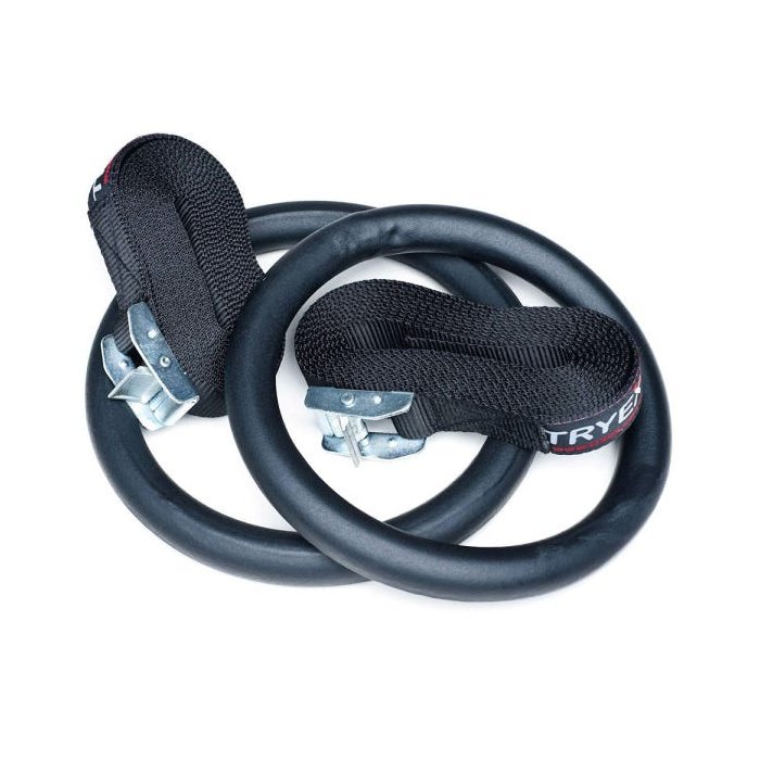 As Argolas são fabricadas em ABS (Acrilonitrila Butadieno Estireno) e incluem fitas de nylon reforçado e fivelas em metal de fecho rapido para garantir maior conforto e segurança nos treinos.