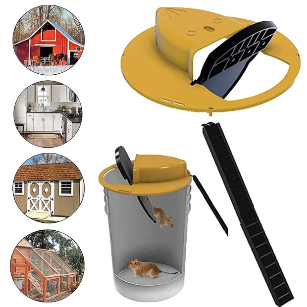 Armadilha para captura de ratos higienica, fácil de montar, não há necessidade de usar cola. Feita para capturar, mas pode também encher o balde com água para que a armadilha seja letal. E você pode usa-lá sempre, pois é reutilizavel.