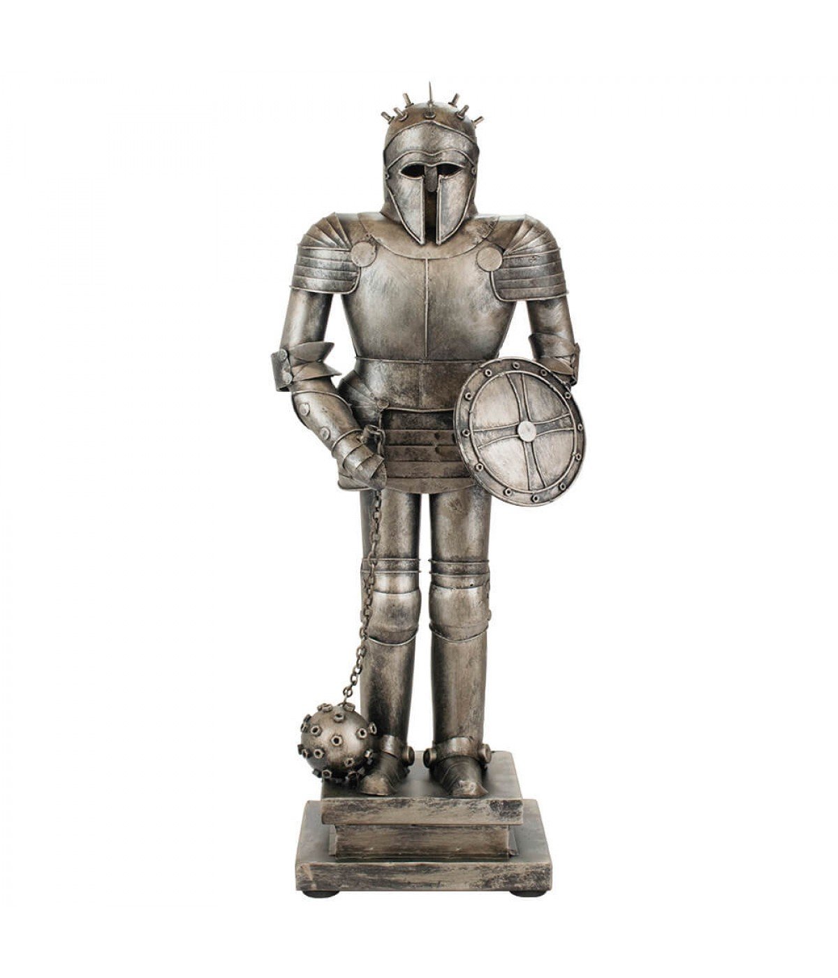 Armadura Medieval Escudo e Mangual 44.5cm Estilo Retrô - Vintage prateada