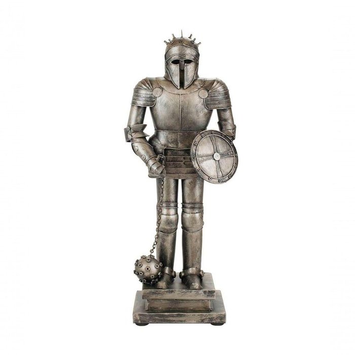 Armadura Medieval Escudo E MangualEnfeite decorativo no formato de uma armadura medieval prateada de 44.5 cm de altura com escudo redondo e um mangual. Produto exclusivamente com função decorativa. Material: metalInformação AdicionalPeso (Kg): 0.86