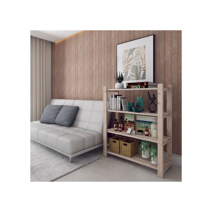 A estante de pinus é fabricada com madeira de alta qualidade que garante durabilidade e resistência, sendo capaz de suportar uma ampla variedade de pesos. Com quatro prateleiras espaçosas, essa estante oferece muito espaço para armazenar livros, objetos de decoração, arquivos e outros itens essenciais.