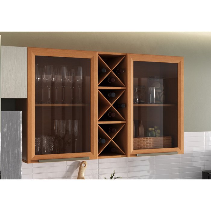 Pensando em um produto prático e funcional além de trazer uma decoração diferenciada para sua cozinha? O Armário Aéreo Com Portas de Vidro Fumê e Garrafeiro (larg 1,20m) da linha Favorita é a solução. Ele tem duas portas de abrir com vidros fumê que proporciona beleza e charme para sua cozinha, dobradiças metálicas de 35mm que oferece maior resistência, duas prateleira e nicho garrafeiro para 12 unidades. É o armário ideal para aproveitar os espaços, organizar os utensílios de sua cozinha e deixar o lugar mais bonito e atraente. Aproveite e utilize outros produtos da linha "Favorita" para renovar sua cozinha com design moderno e elegante.