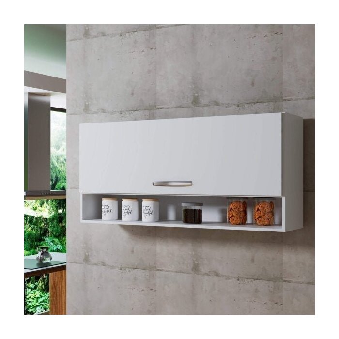 Armário Aéreo 1 Porta Basculante 1 Nicho Espresso Móveis Branco