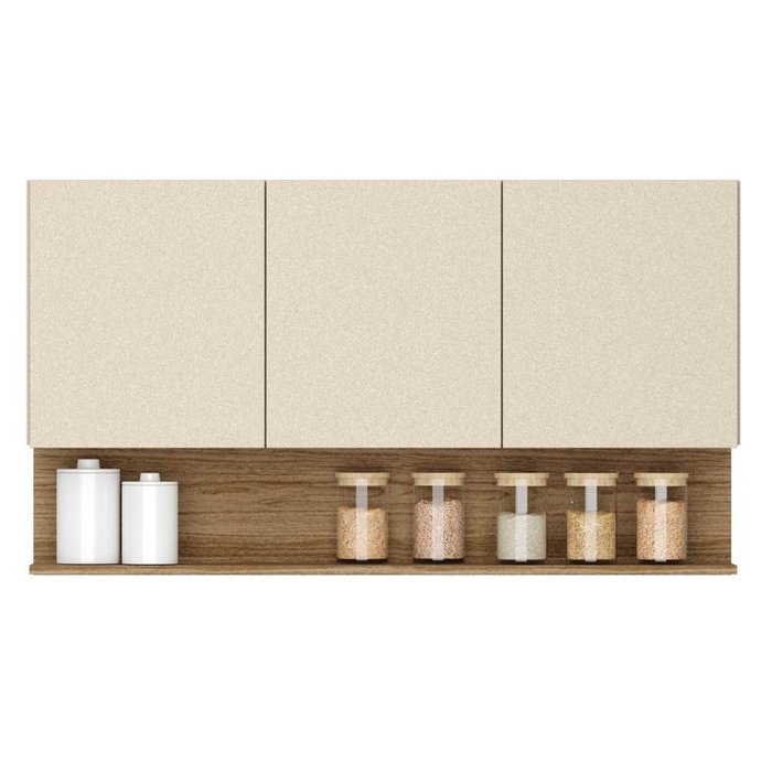 Armário Aéreo 120cm 3 Portas Lina K02 Vanilla/Freijó - Mpozenato